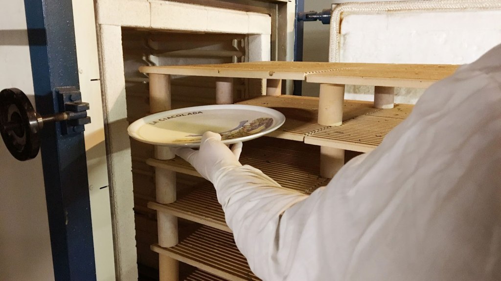 La cottura dei manufatti con la stampa digitale è la fase conclusiva. La cottura nel forno ceramico avverrà ad una temperatura che va dai 920°C ai 930°C. La durata della cottura, dal riscaldamento del forno fino al suo completo raffreddamento, è di circa 24 ore. In questa fase, i colori ceramici attraverso le decalcomanie applicate, si fonderanno con la ceramica (maiolica o porcellana), vetrificando l’immagine che diventa “indelebile e inalterabile nel tempo”.
